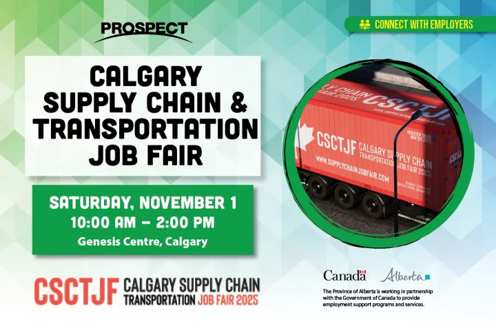Prospect is proud to partner with the Calgary Supply Chain Transportation Job Fair. This event brings together job seekers and employers from across Alberta’s supply chain sector. Whether you are just starting out or looking to advance your career, this is a chance to meet hiring managers, explore training options, and learn about the wide range of roles available in this growing industry.