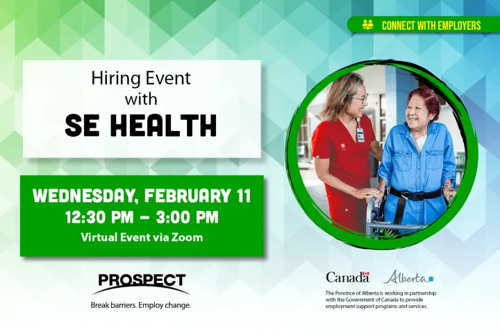 Are you a certified Health Care Aide or Licensed Practical Nurse looking for work in Canmore or Red Deer? SE Health is hiring for full time, part time, and casual positions and they want to meet you. This virtual hiring fair is a chance to learn about the organization, explore the roles available, and connect directly with SE Health recruiters.