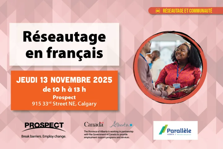 Prospect et Parallèle Alberta ont le plaisir de vous inviter à un événement de réseautage en Français le jeudi 13 novembre 2025, de 10.00 AM à 1.00 PM, dans les locaux de Prospect :