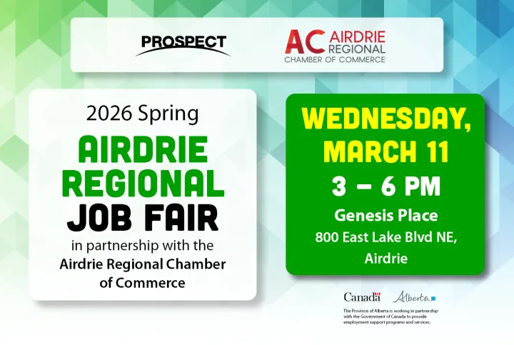 Join us for the Spring 2026 Airdrie Regional Job Fair on Wednesday, March 11 from 3:00 PM to 6:00 PM at Genesis Place, 800 East Lake Blvd NE .